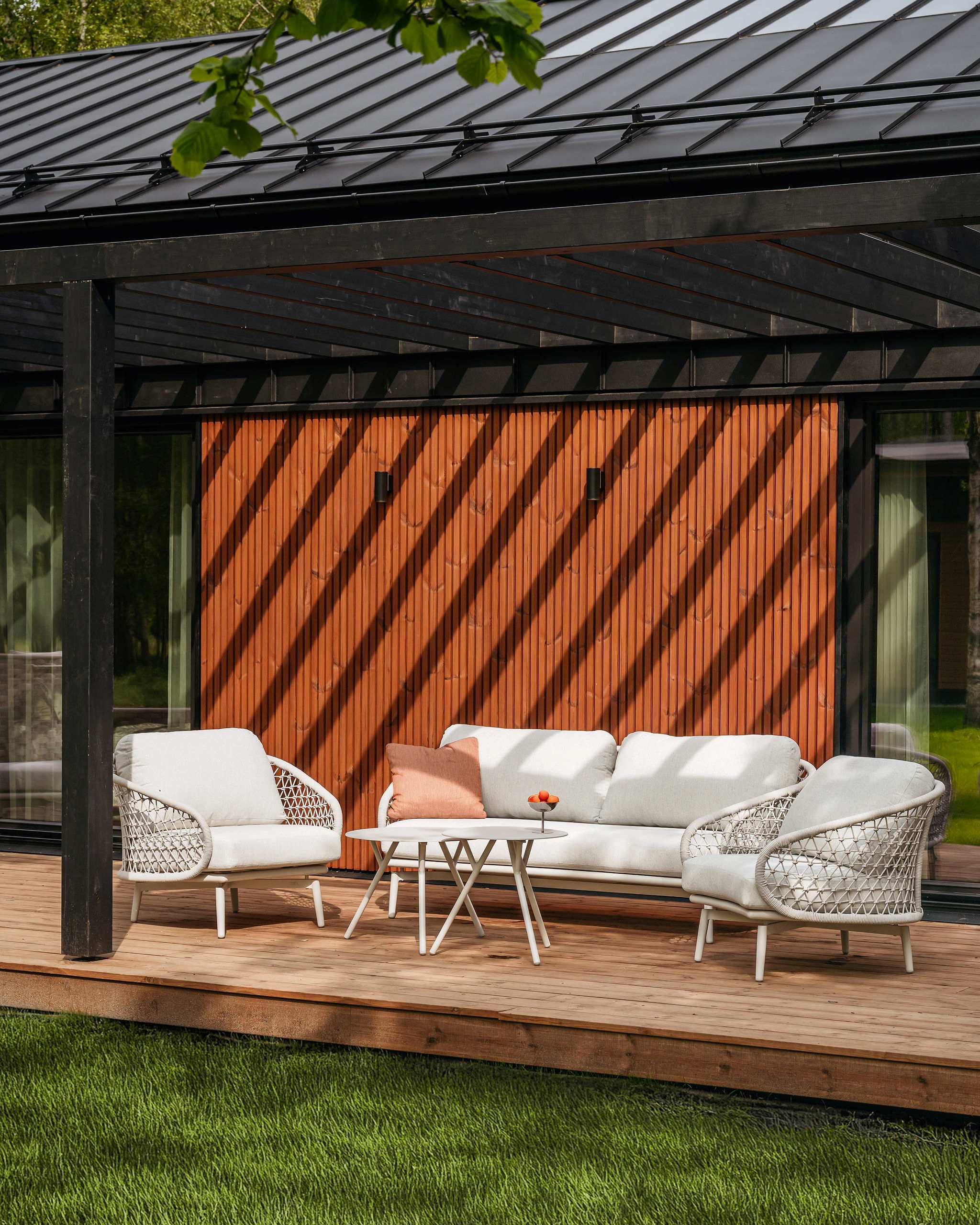 - Pateicoties inovatīvajai ventilācijas sistēmai, mēbeles var izmantot gandrīz uzreiz pēc lietus. Tīklveida putas novada ūdeni caur mīkstajām mēbeļu daļām, bet ūdeni atgrūdošs audums pasargā no mitruma.