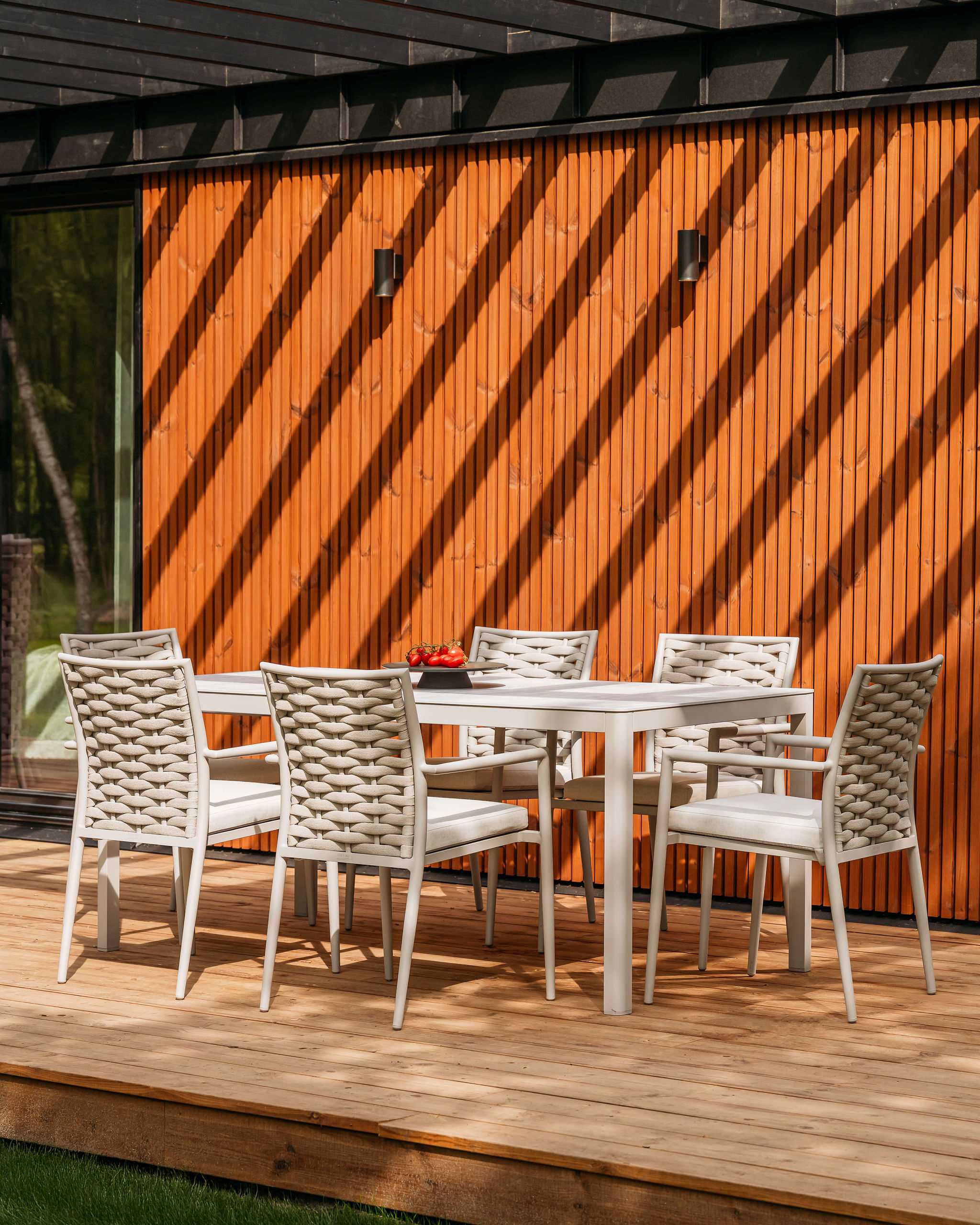 Loop sērijas komplekts ir ietilpīga un eleganta izvēle lielākai kompānijai. Liels ēdamgalds un seši ērti krēsli rada ideālu vietu ģimenes vakariņām un vasaras grila ballītēm svaigā gaisā.