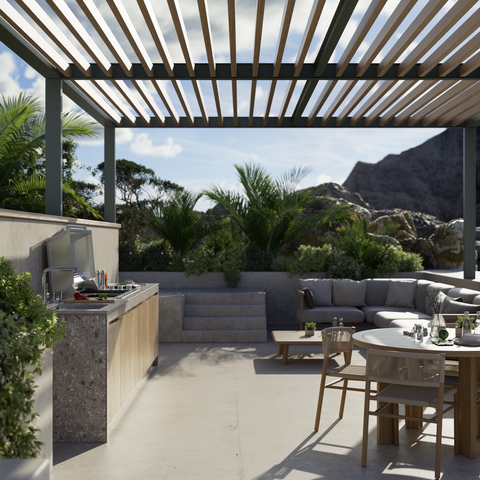 Meie keraamilised ja tehnilisest kivist pinnad on inspireeritud loodusest, võimaldades väliköökidel sulanduda ümbritsevasse keskkonda loomulikult ja harmooniliselt.