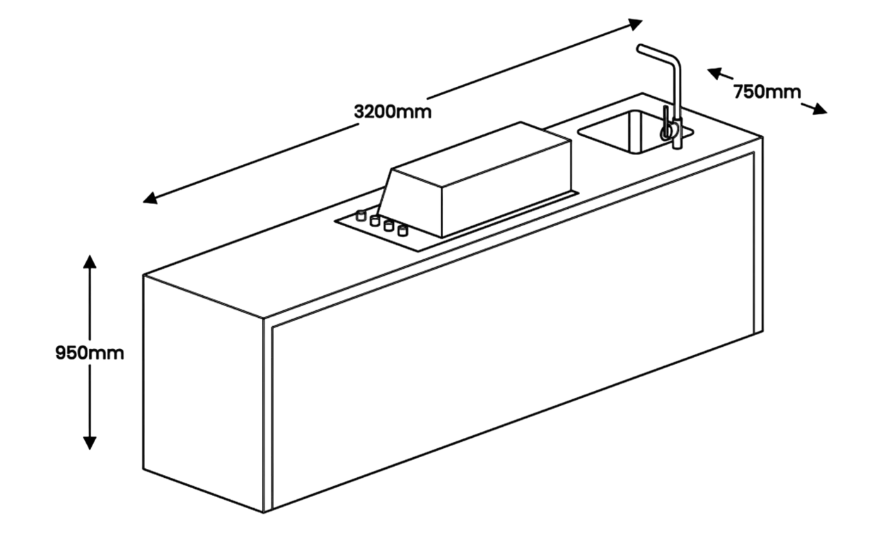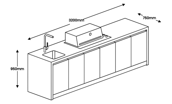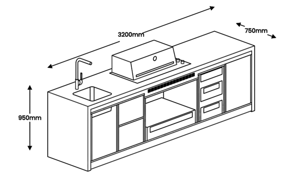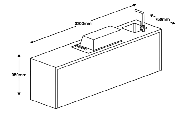 3200 mm x 750 mm x 950 mm