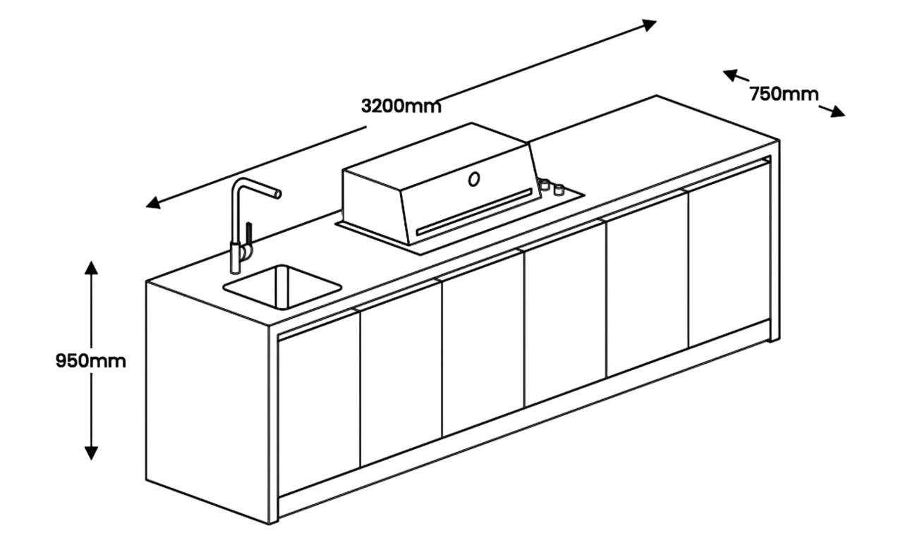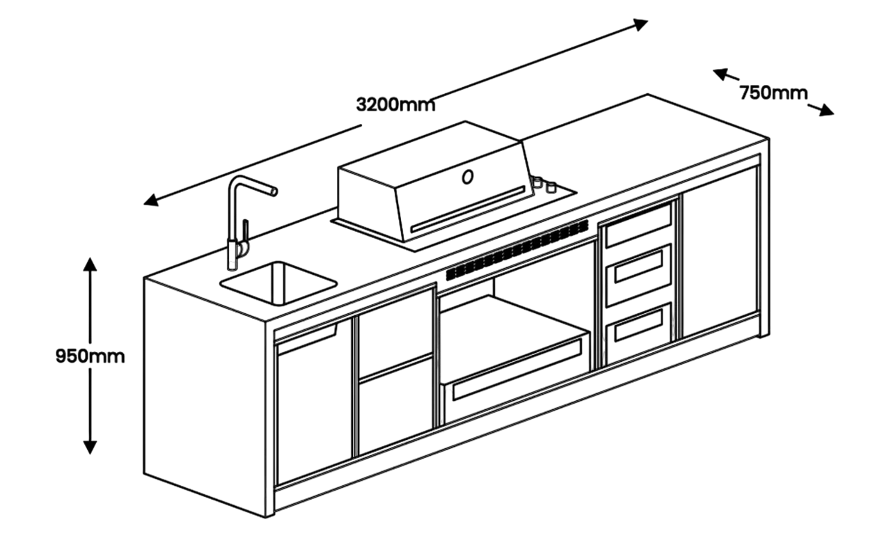 Meie väliköögid on valmistatud alumiiniumraamiga konstruktsioonina, millele on paigaldatud keraamilised (6 mm) või tehnilisest kivist (4/8 mm) esipaneelid ning alumiiniumkomposiitpaneelidest sisekatted. Tööpind on valmistatud 20 mm paksusest plaadist, pakkudes vastupidavat ja elegantset pinda kulinaarseteks ettevõtmisteks.
